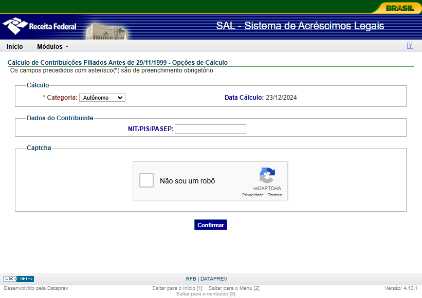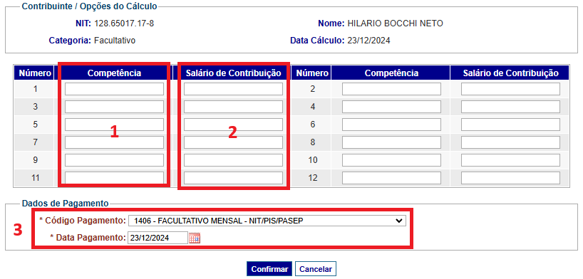 - Basta preencher os dados solicitados, como o período de atraso e o valor da contribuição, e o sistema vai calcular automaticamente o valor a ser pago, já considerando todos os acréscimos.