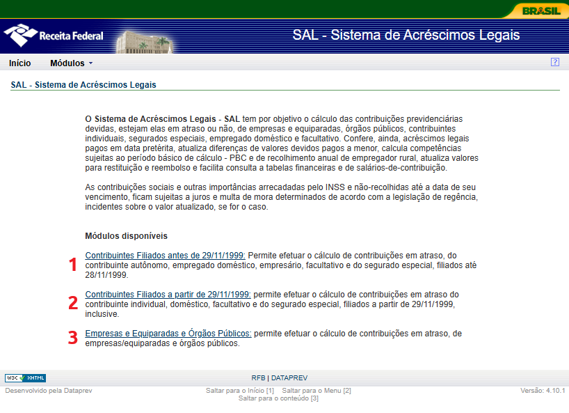 Você será redirecionado para uma página da Receita Federal, o SAL (Sistema de Acréscimos Legais) e terá que escolher qual opção você se enquadra: