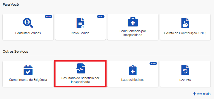 - Localize a opção “Resultado de Benefício por incapacidade”: